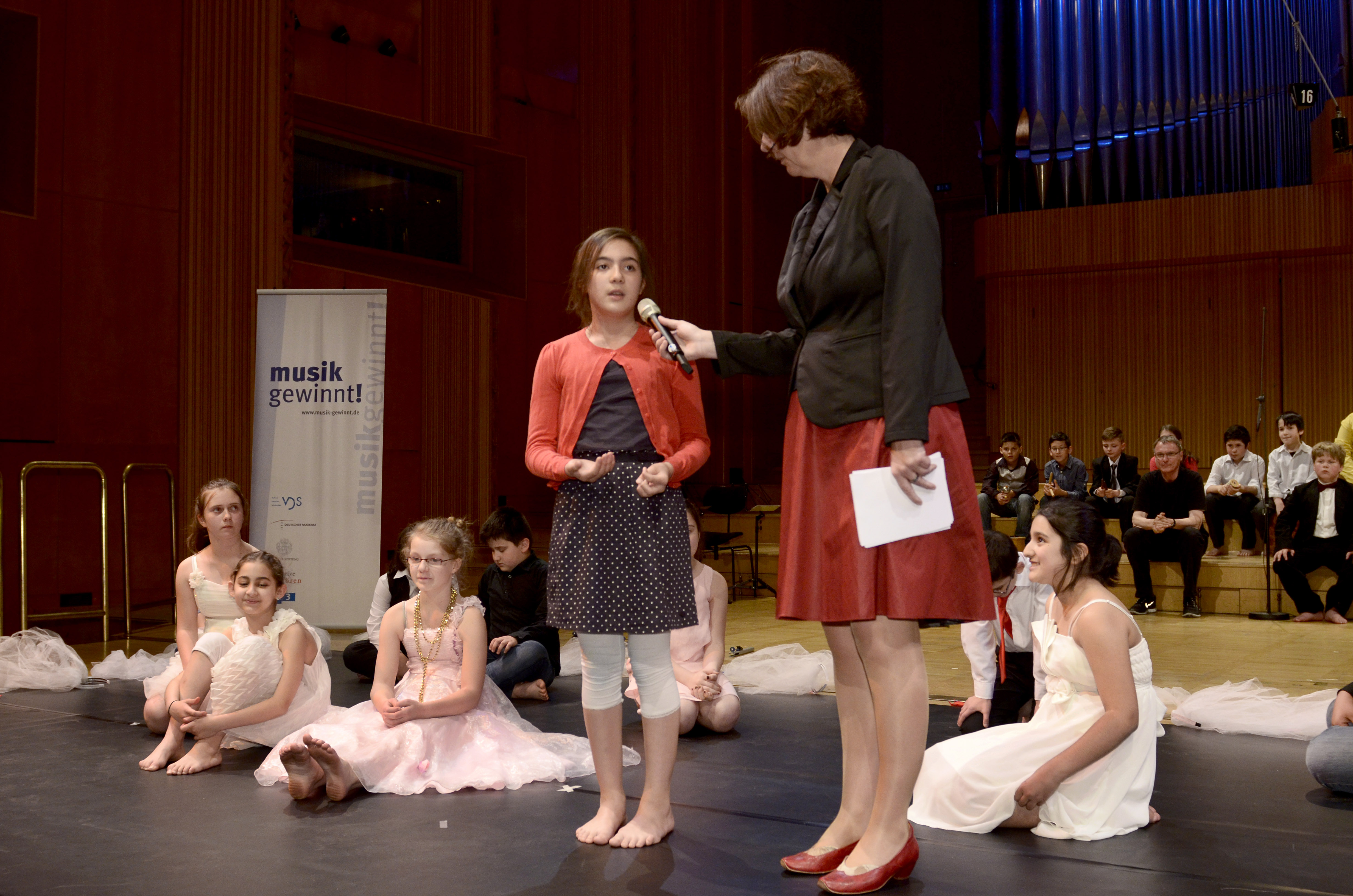 Barbara Overbeck im Gespräch mit einer Schülerin der Städtischen Gemeinschaftsgrundschule Sandstraße, Duisburg