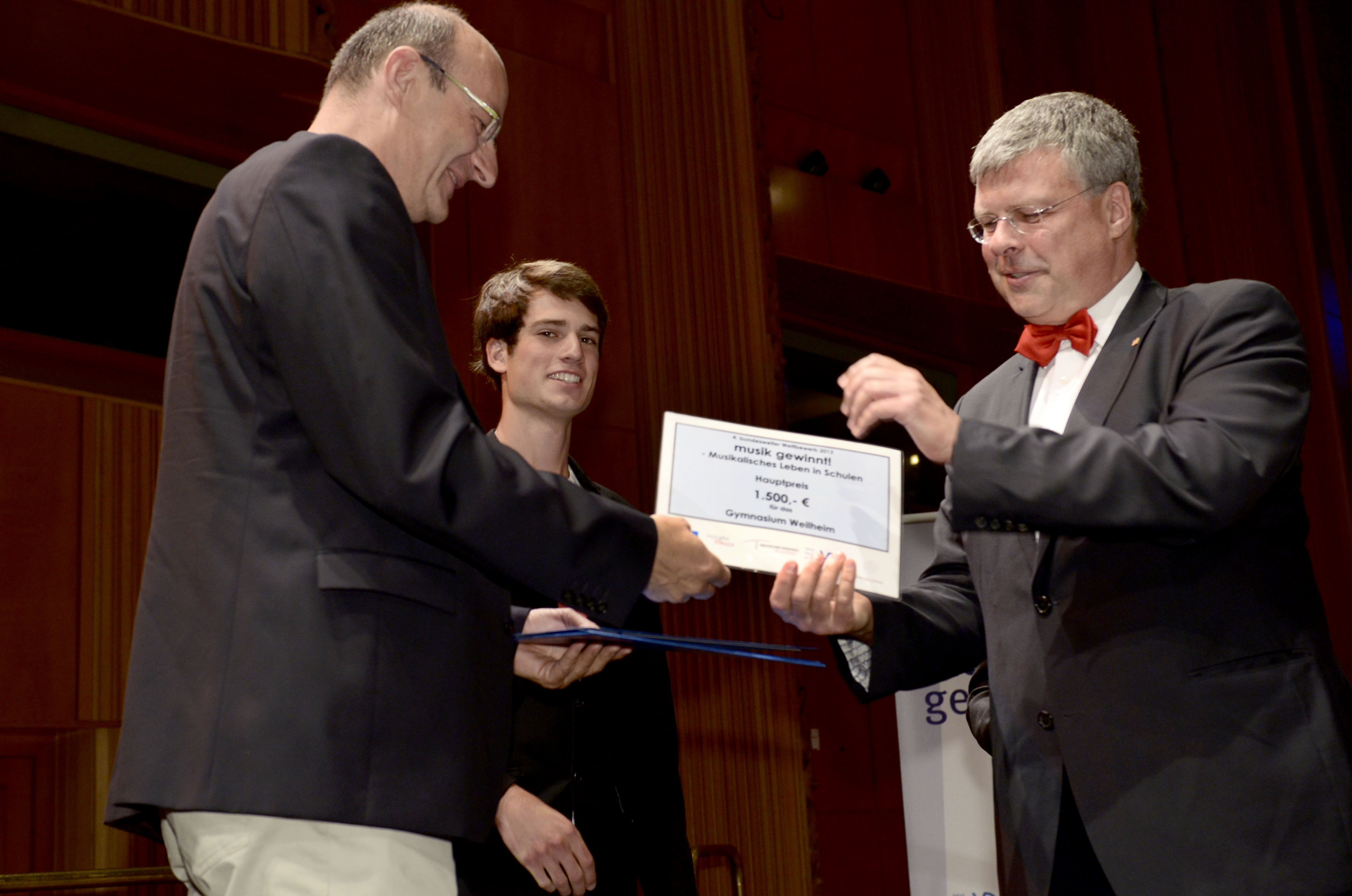 Christian Höppner, Präsident des Deutsches Kulturrates, überreicht Urkunde an das Gymnasium Weilheim